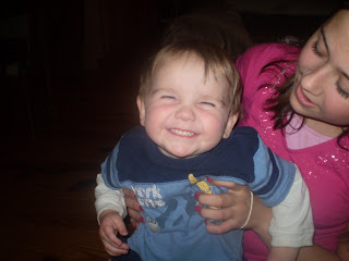 Kyle's recovery from his broken leg has been quick. The first few days after his cast was removed, I was concerned as he didn't seem to be able to use that leg. But then he started crawling with it and last Thursday he started walking if you held his hands. Which lead to his walking all on his own on Saturday. He hasn't crawled since!