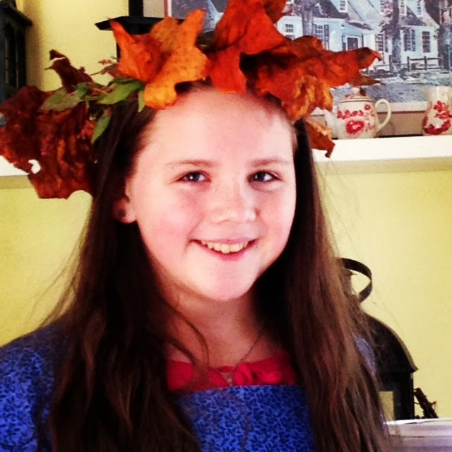 She had a costume long dress on over her tshirt and jeans and was wandering around our woods and pasture! She made herself her wreath of autumn leaves! What a beauty she is! I am so thankful for her!